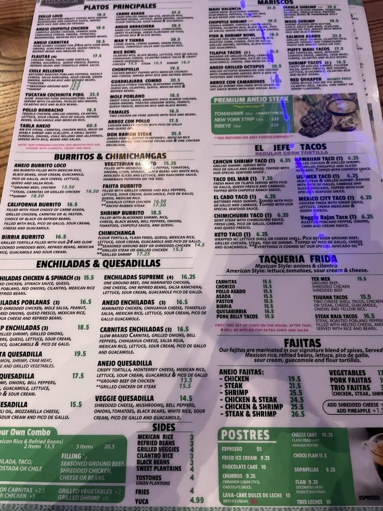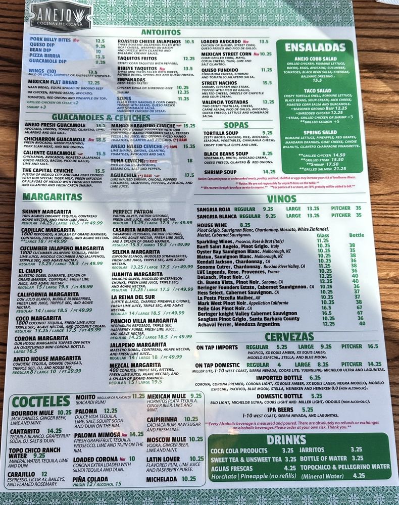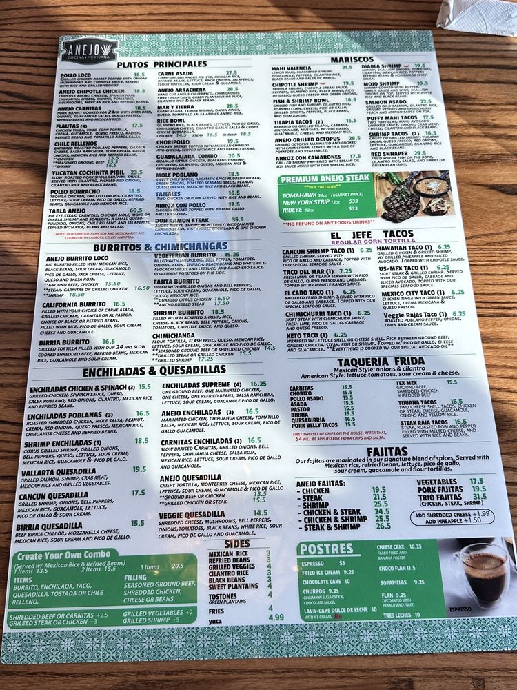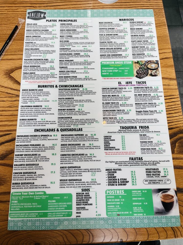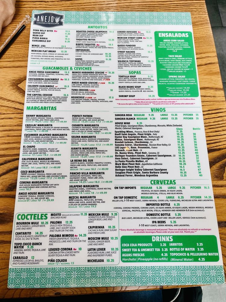 Welcome to Anejo Cocina Mexicana, a vibrant gem nestled in Saint Johns, FL, where the rich flavors of Mexican cuisine come alive. This restaurant is not just about food; it's an experience that embraces tradition and innovation. The menu showcases a delightful array of authentic dishes, allowing you to take a culinary journey through Mexico.